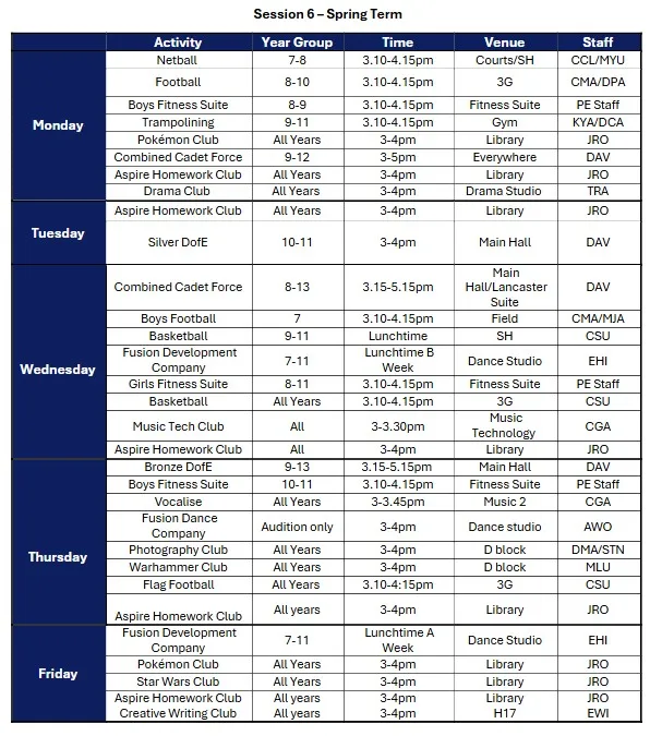 Spring Term Session 6 Activities