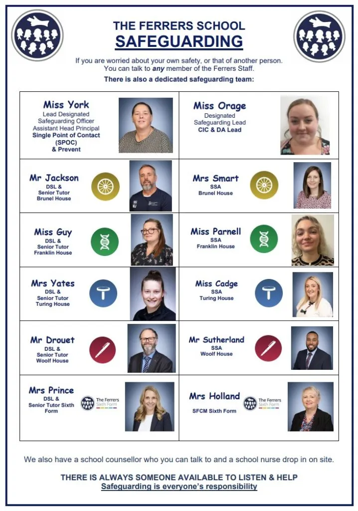 The Designated Safeguarding Persons at The Ferrers School are: